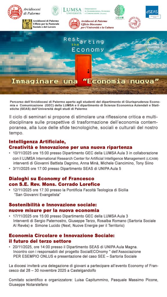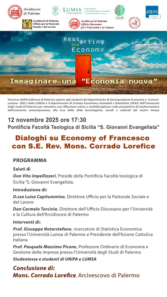 E’ titolo e tema dato al percorso promosso dall’Arcidiocesi di Palermo, per stimolare una riflessione critica e multidisciplinare sulle prospettive di trasformazione dell’economia contemporanea, alla luce delle sfide tecnologiche, sociali e culturali del nostro tempo.